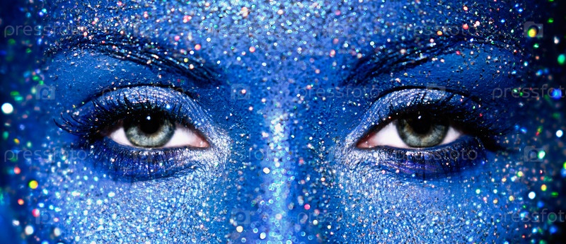 Красивые женские глаза с искрами на лице