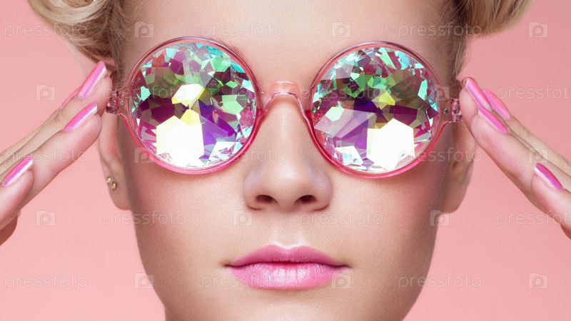 Портрет красивой молодой женщины с цветными очками