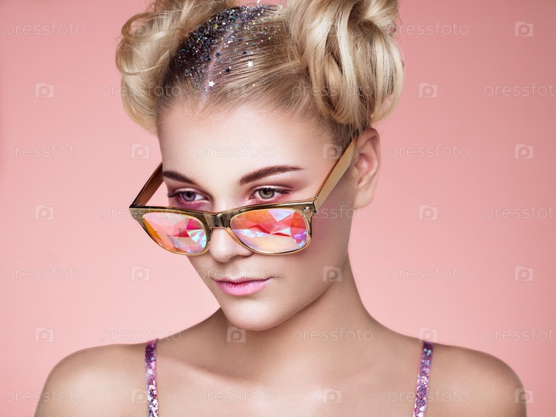Портрет красивой молодой женщины с цветными очками