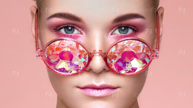 Портрет красивой молодой женщины с цветными очками