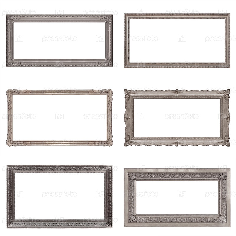 Набор панорамных серебряных рамок для картин, зеркал или фотографий, изолированных на белом фоне