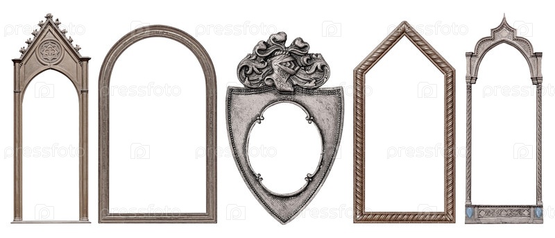 Набор серебряных готических рамок для картин, зеркал или фотографий изолированный на белом фоне