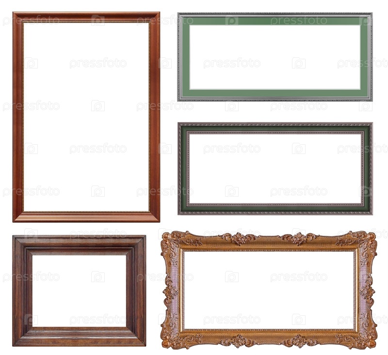 Набор деревянных рамок для картин, зеркал или фотографий изолированный на белом фоне