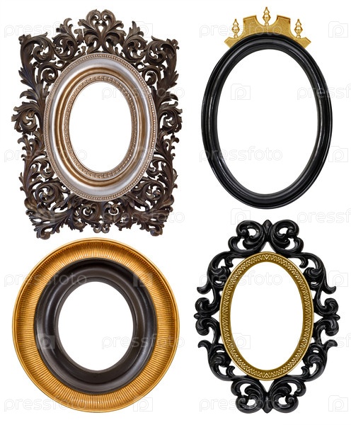 Набор овальных деревянных рамок для картин, зеркал или фотографий изолированный на белом фоне