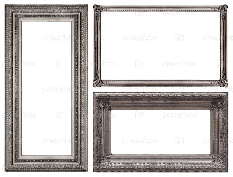 Набор серебряных рамок для картин, зеркал или фотографий изолированный на белом фоне