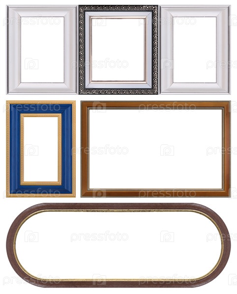 Набор деревянных рамок для картин, зеркал или фотографий изолированный на белом фоне