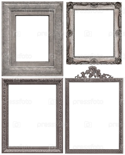 Набор серебряных рамок для картин, зеркал или фотографий изолированный на белом фоне