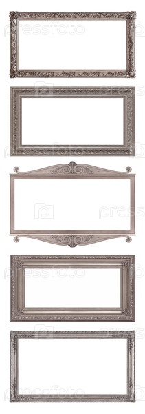 Набор панорамных серебряных рамок для картин, зеркал или фото изолированного на белом фоне