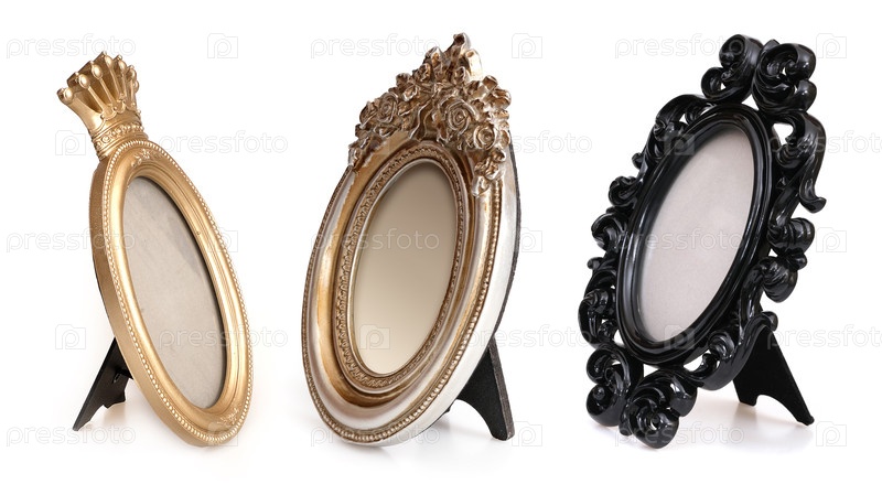 Золотая рама с короной для картин, зеркал или фотографии в перспективе изолирована на белом фоне