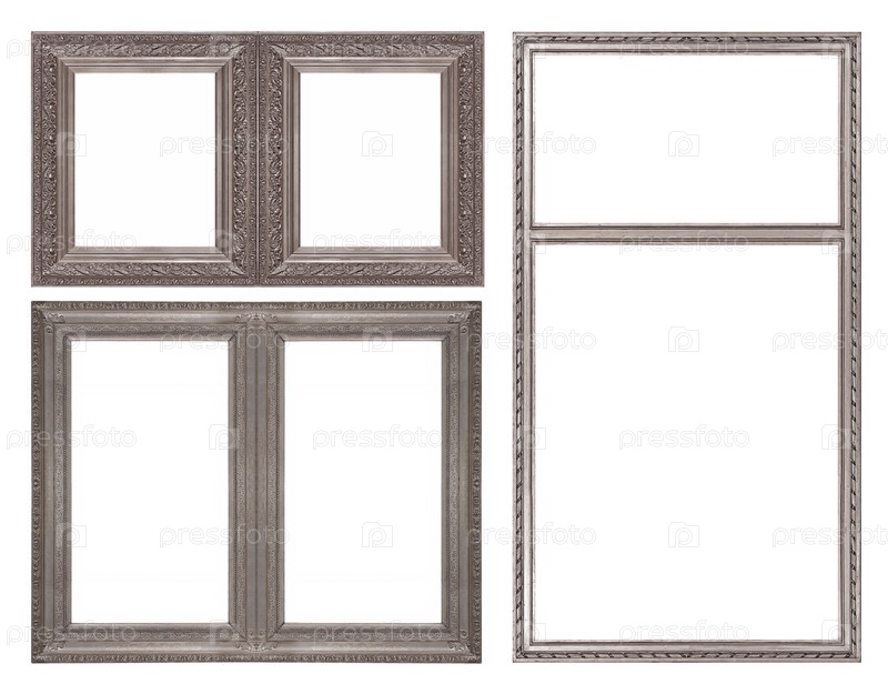 Набор серебряных рамок для картин, зеркал или фотографий изолированный на белом фоне