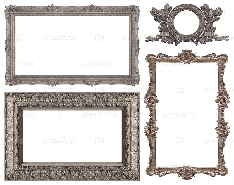 Набор серебряных рамок для картин, зеркал или фотографий изолированный на белом фоне