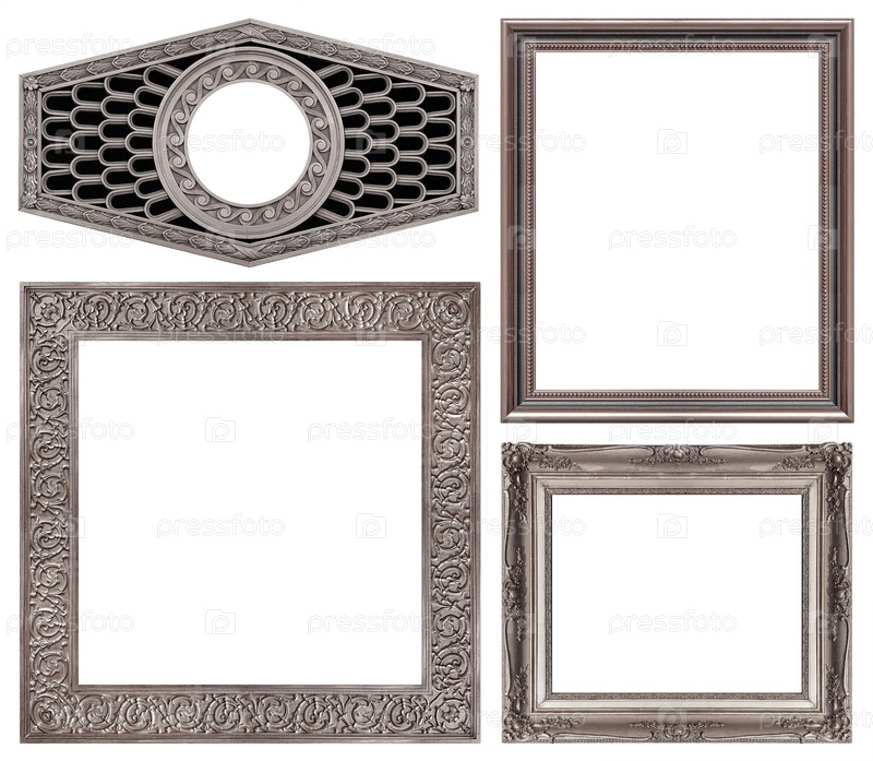 Набор серебряных рамок для картин, зеркал или фотографий изолированный на белом фоне