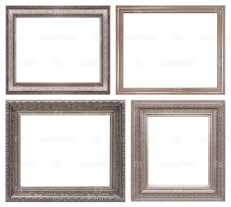 Набор серебряных рамок для картин, зеркал или фотографий изолированный на белом фоне
