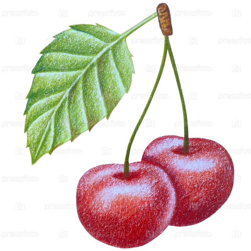 Клипарт с вишневыми фруктами. Ручно нарисованные свежие спелые ягоды. Летний цветок сада, сочный десерт, урожай фермы. Набор ботанических иллюстраций акварели для дизайна этикетки, меню, логотипа, приглашения или упаковки