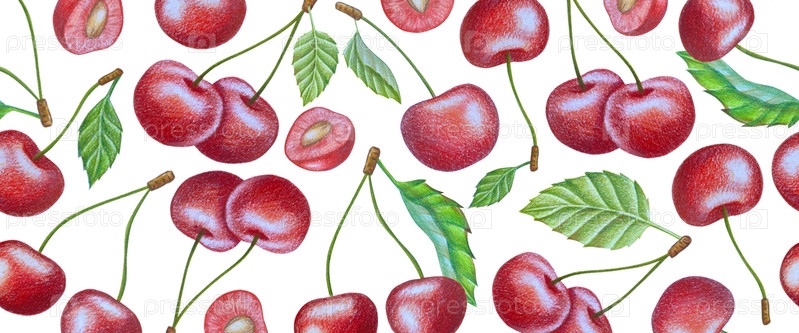 Клипарт с вишневыми фруктами. Ручно нарисованные свежие спелые ягоды. Летний цветок сада, сочный десерт, урожай фермы. Набор ботанических иллюстраций акварели для дизайна этикетки, меню, логотипа, приглашения или упаковки