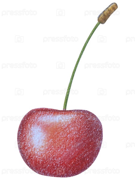 Клипарт с вишневыми фруктами. Ручно нарисованные свежие спелые ягоды. Летний цветок сада, сочный десерт, урожай фермы. Набор ботанических иллюстраций акварели для дизайна этикетки, меню, логотипа, приглашения или упаковки