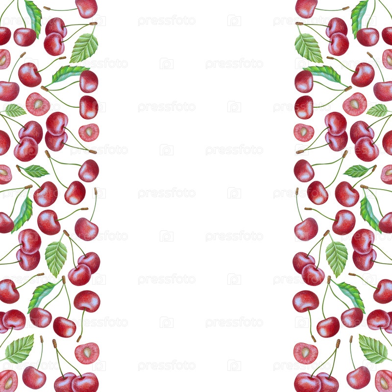 Клипарт с вишневыми фруктами. Ручно нарисованные свежие спелые ягоды. Летний цветок сада, сочный десерт, урожай фермы. Набор ботанических иллюстраций акварели для дизайна этикетки, меню, логотипа, приглашения или упаковки