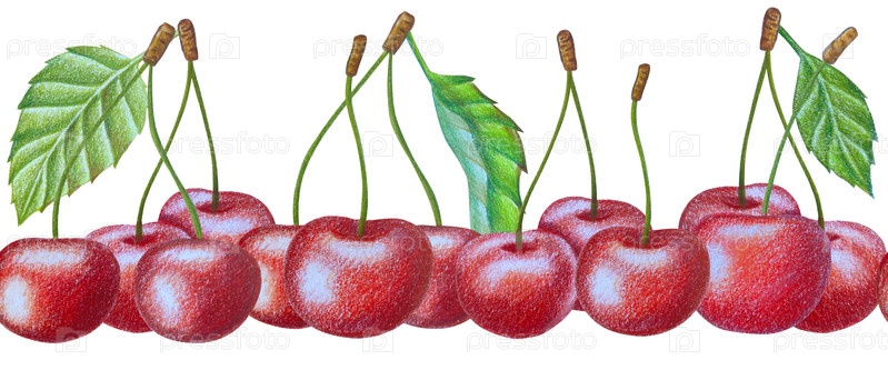 Клипарт с вишневыми фруктами. Ручно нарисованные свежие спелые ягоды. Летний цветок сада, сочный десерт, урожай фермы. Набор ботанических иллюстраций акварели для дизайна этикетки, меню, логотипа, приглашения или упаковки