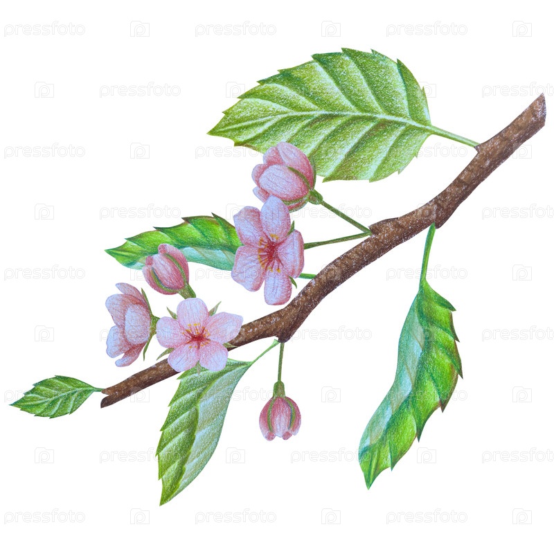 Клипарт с вишневыми фруктами. Ручно нарисованные свежие спелые ягоды. Летний цветок сада, сочный десерт, урожай фермы. Набор ботанических иллюстраций акварели для дизайна этикетки, меню, логотипа, приглашения или упаковки