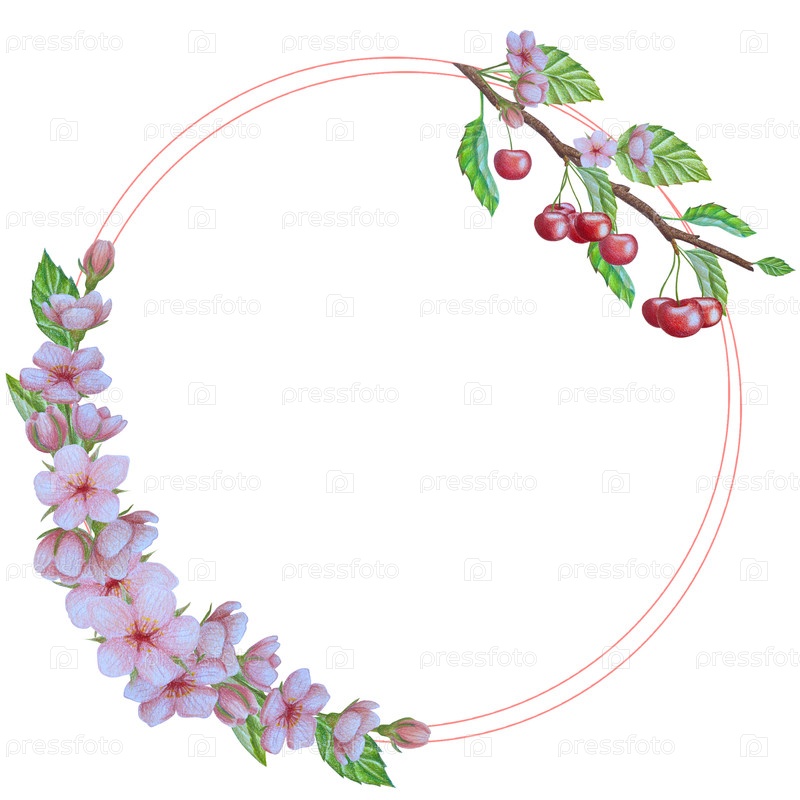 Клипарт с вишневыми фруктами. Ручно нарисованные свежие спелые ягоды. Летний цветок сада, сочный десерт, урожай фермы. Набор ботанических иллюстраций акварели для дизайна этикетки, меню, логотипа, приглашения или упаковки