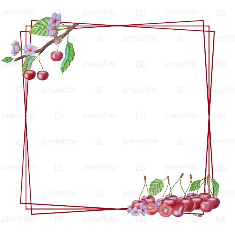 Клипарт с вишневыми фруктами. Ручно нарисованные свежие спелые ягоды. Летний цветок сада, сочный десерт, урожай фермы. Набор ботанических иллюстраций акварели для дизайна этикетки, меню, логотипа, приглашения или упаковки