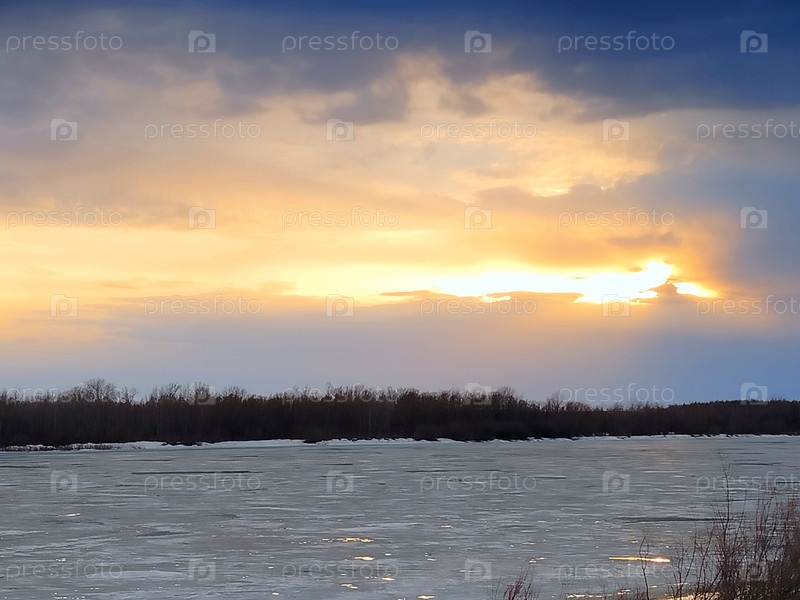 Вечерний вид на весенний ледоход на реке Иртыш