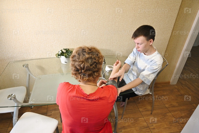 Мальчик, слушающий сердцебиение деда со стетоскопом