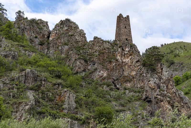 Древние ингушские башни в горах. Вовнушки, Ингушетия, Россия