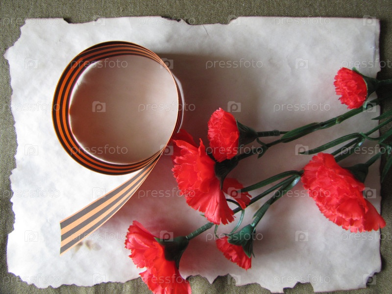 Георгиевская лента и красные гвоздики