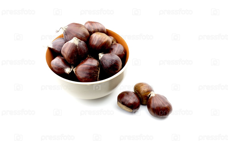 Свежий каштановый на белом фоне крупный план