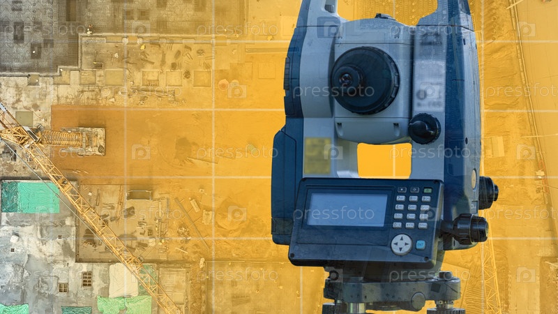 Устройство геодезиста доминирует в кадре, точное и мощное