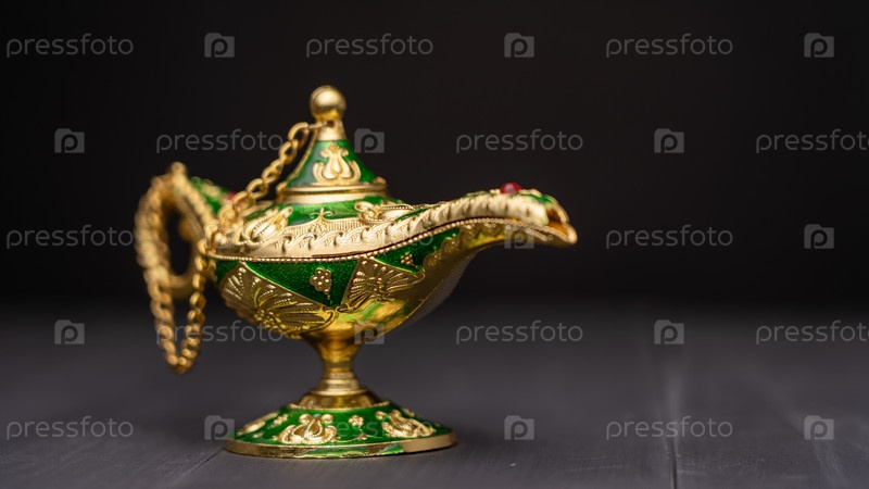 Масляная лампа в стиле античных Аравийских ночей с мягким, белым эффектом дыма на темном фоне