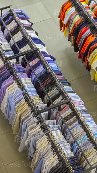 Поставка рубашек в магазине с различными цветами и стилями