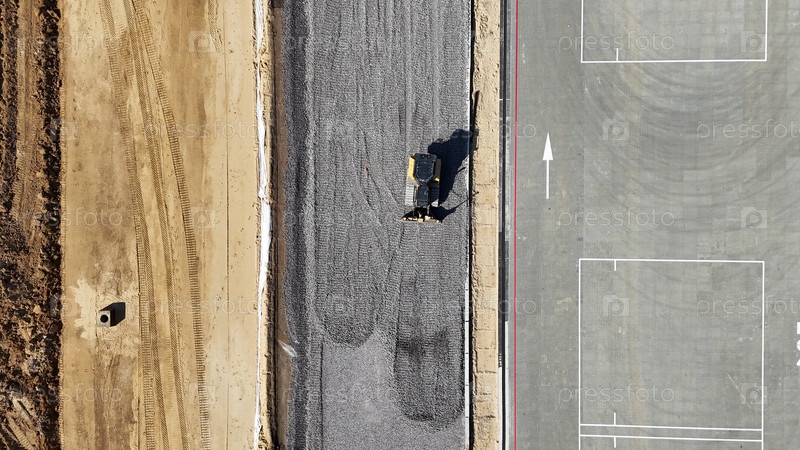 Строительная дорога, Большое катание на коньках развалины во время строительства дороги вид сверху из квадрокоптера