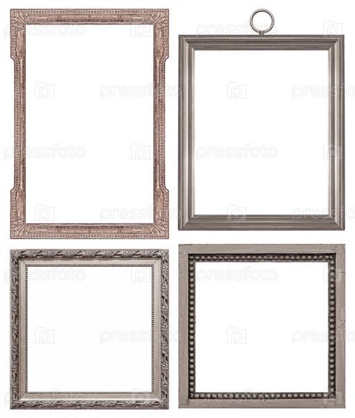 Набор серебряных рамок для картин, зеркал или фотографий изолированный на белом фоне