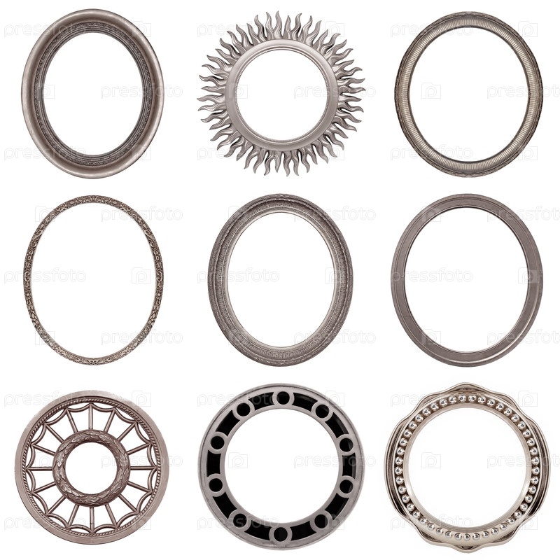 Набор серебряных рамок для картин, зеркал или фотографий изолированный на белом фоне