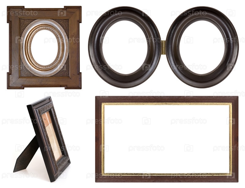Набор деревянных рамок для картин, зеркал или фотографий изолированный на белом фоне
