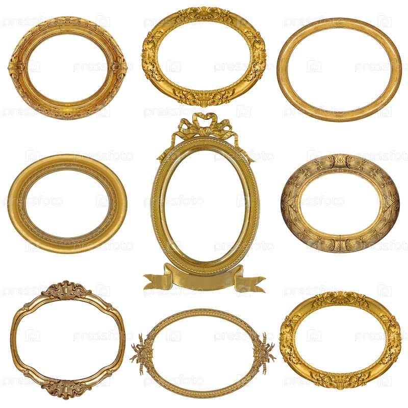 Набор золотых рамок для картин, зеркал или фотографий, изолированных на белом фоне