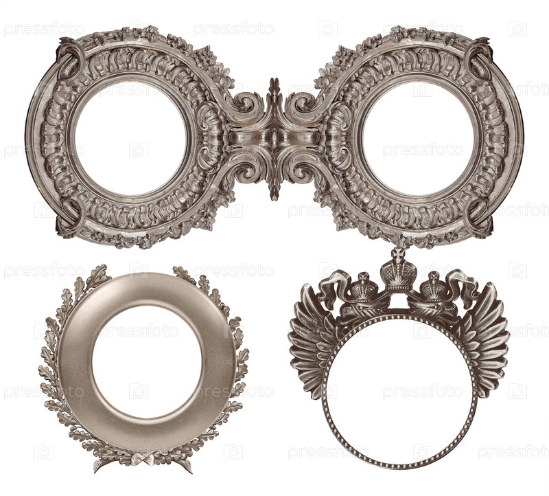 Набор серебряных рамок для картин, зеркал или фотографий изолированный на белом фоне