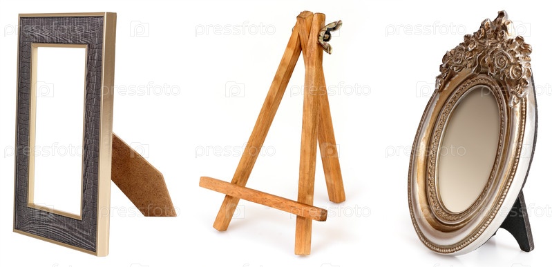 Набор деревянных рамок для картин, зеркал или фото в перспективе изолированный на белом фоне