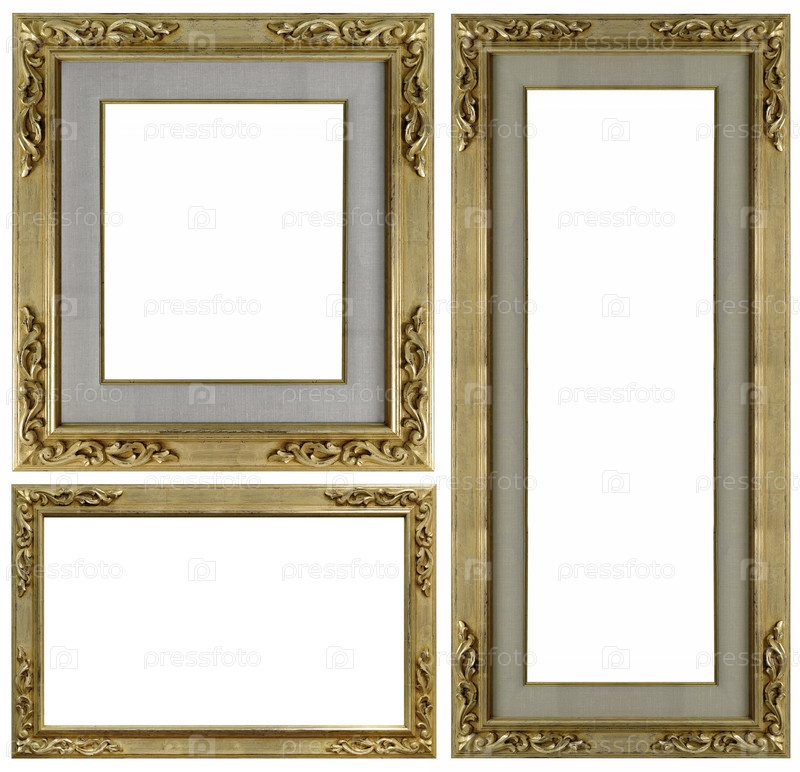 Набор золотых рамок для картин, зеркал или фотографий, изолированных на белом фоне