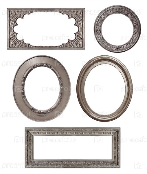 Набор серебряных рамок для картин, зеркал или фотографий изолированный на белом фоне