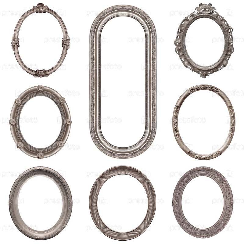 Набор серебряных рамок для картин, зеркал или фотографий изолированный на белом фоне