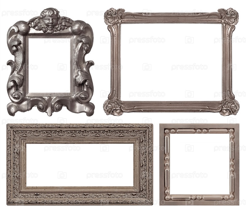 Набор серебряных рамок для картин, зеркал или фотографий изолированный на белом фоне