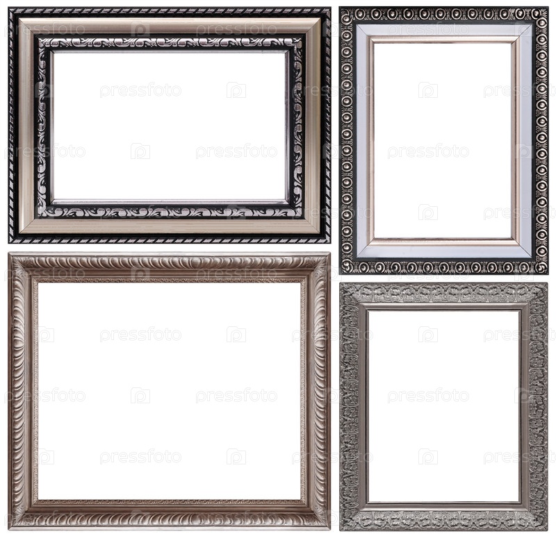 Набор серебряных рамок для картин, зеркал или фотографий изолированный на белом фоне