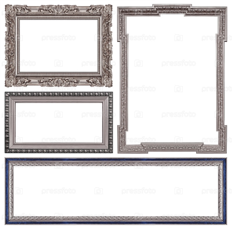 Набор серебряных рамок для картин, зеркал или фотографий изолированный на белом фоне