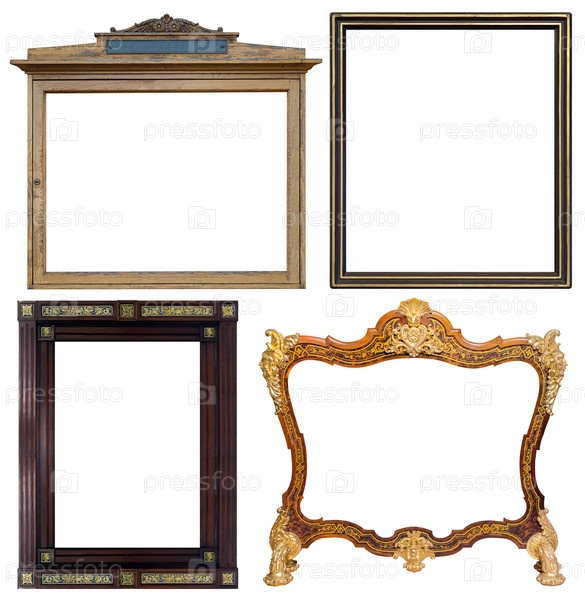 Набор деревянных рамок для картин, зеркал или фотографий изолированный на белом фоне
