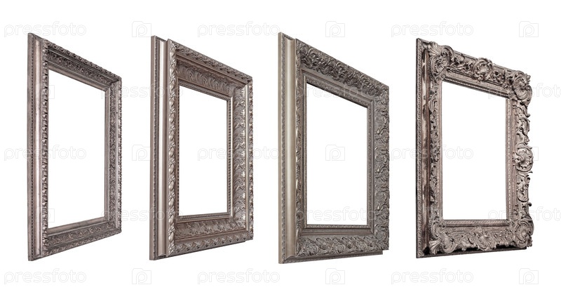 Набор серебряных рамок для картин, зеркал или фото в перспективе изолированный на белом фоне