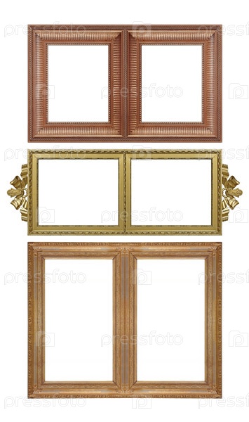 Набор двойных золотых рамок (диптих) для картин, зеркал или фотографий, изолированных на белом фоне