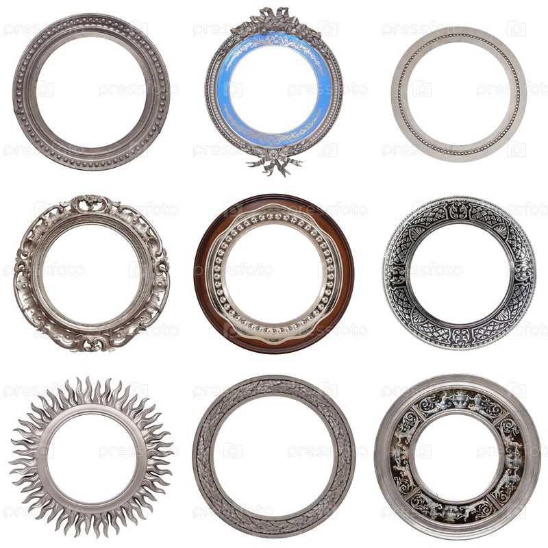 Набор серебряных рамок для картин, зеркал или фотографий изолированный на белом фоне